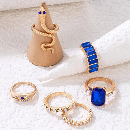 Yu Fashions Snake Evil Eye Crystal Korean Ring Set of 6