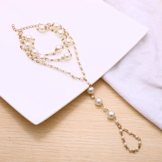 Yu Fashions White Pearl Beads Golden Beach Single Foot Korean Anklet