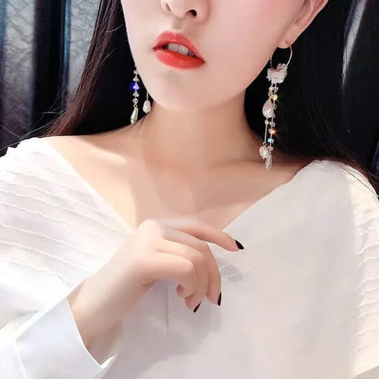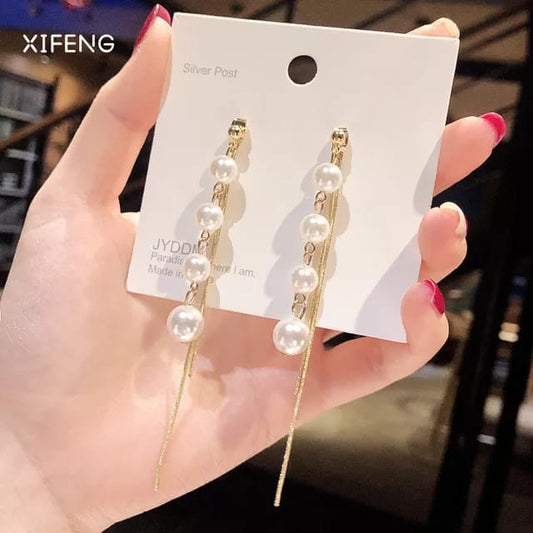 Yu Fashions White Pearl Tassel dual Korean Earrings pair