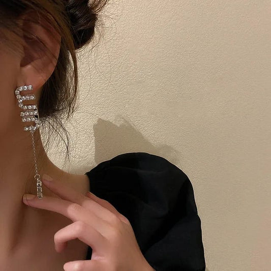 Yu Fashions Zigzag High Fashion Rhinestone Drop Korean earrings Pair