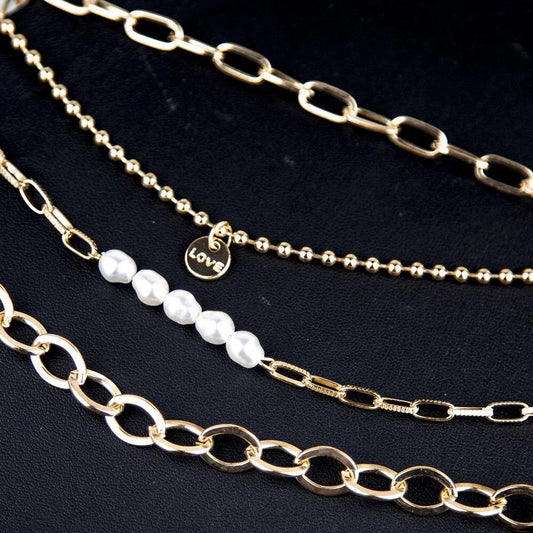 Yu Fashions 4 Layered Heart Geometrical Link Multilayered Necklace Chain