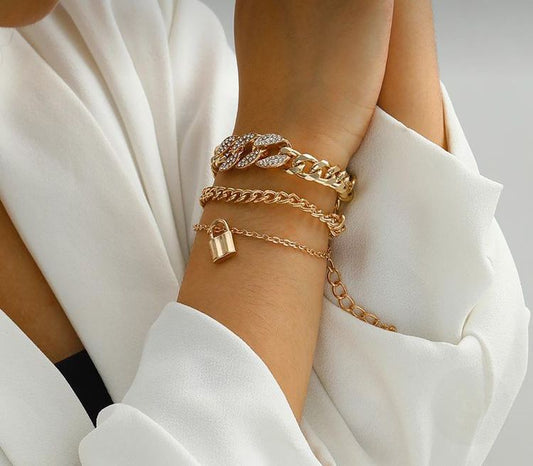 Yu Fashions 3 Layered Rhinestone Lock Link Multilayered Korean Bracelet