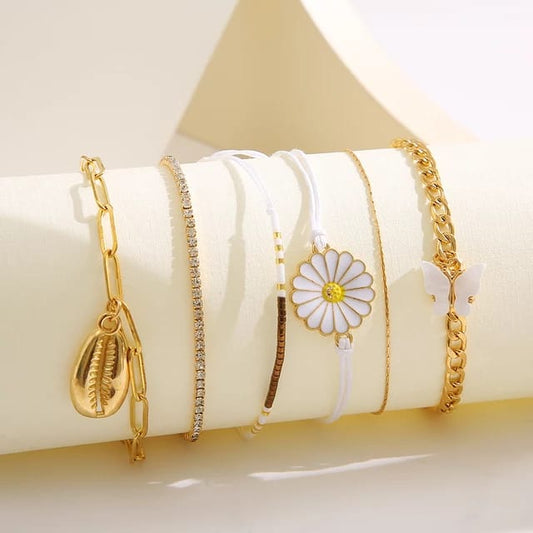 Yu Fashions 5 Layered Daily Flower Butterfly Shell Rhinestone Multilayered Korean Bracelet