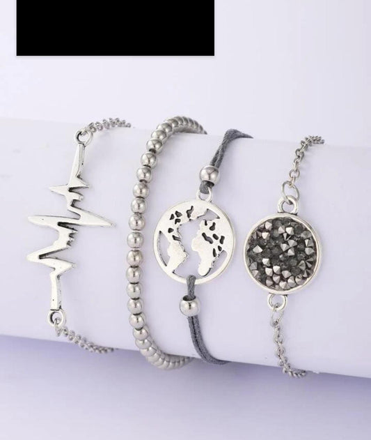 YU Fashions Heartbeat Silver 4 layered world map Stone High Fashion Korean Bracelet