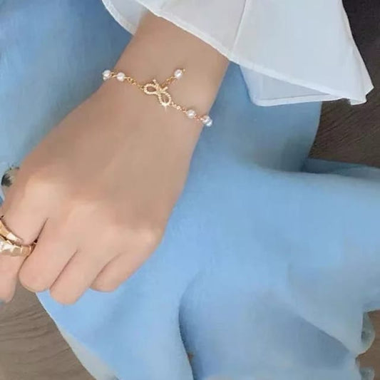 Yu Fashions Pearl Golden Bow Knot Rhinestone Korean Bracelet