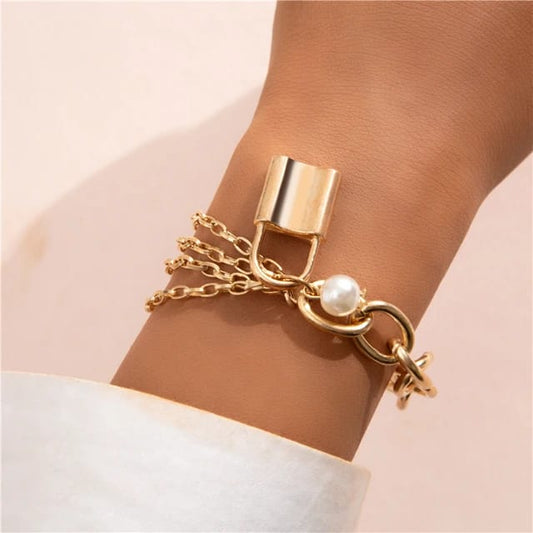 Yu Fashions Link Chain Lock Multilayered Korean Bracelet
