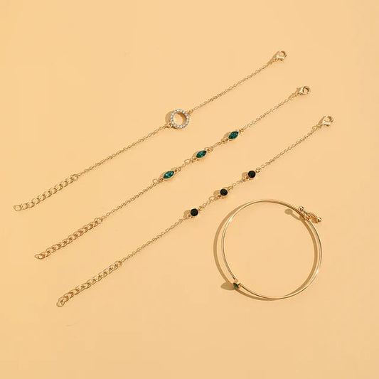 Yu Fashions Green Emerald Evil eye Multilayered Korean Bracelet