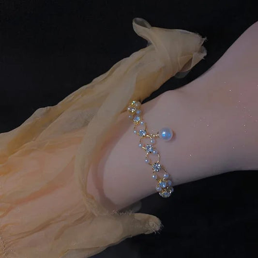 Yu Fashions Butterfly Crystal Pearl Korean Adjutable Bracelet