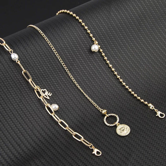 Yu Fashions 3 layered Pearl Coin LOVE Letter Multilayered Bracelet