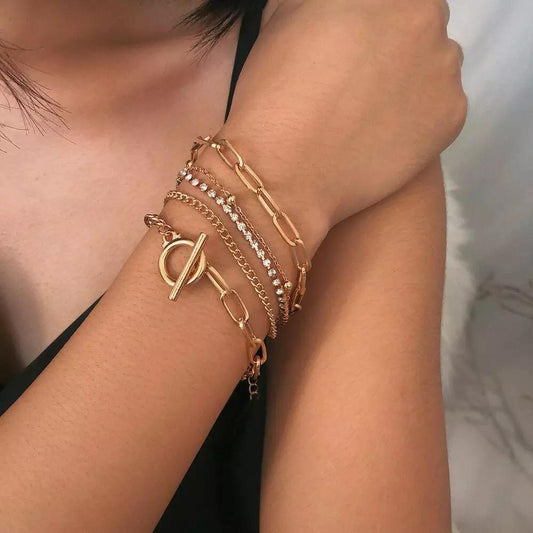 Yu Fashions 5 Layered Toggle Rhinestone Link Multilayered Korean Bracelet
