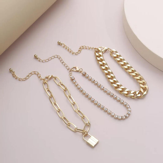 Yu Fashions 3 Layered Rhinestone Lock Link Multilayered Korean Bracelet