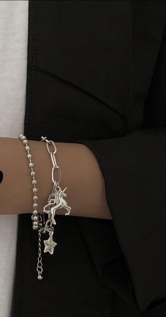 Yu Fashions 2 layered Unicorn Star Charm Link Chain Stainless Steel Multilayered Korean Bracelet