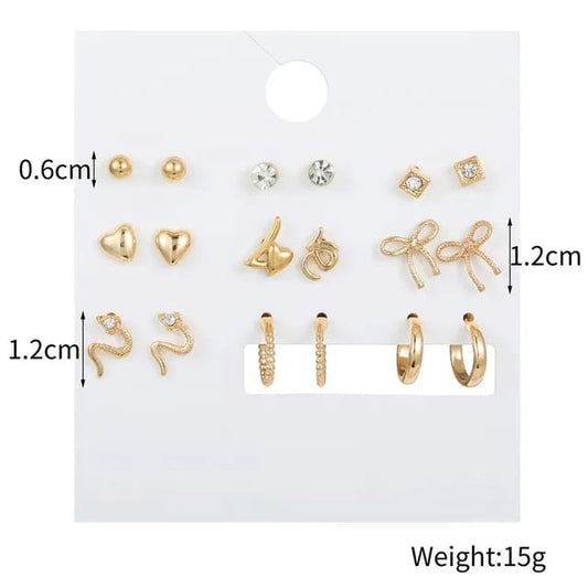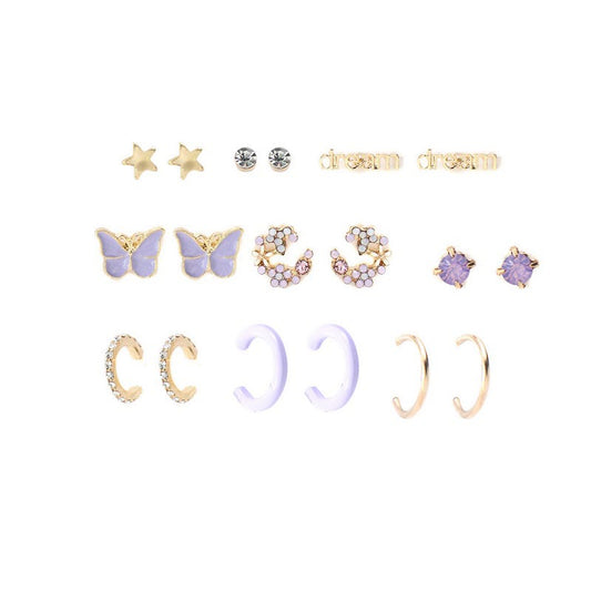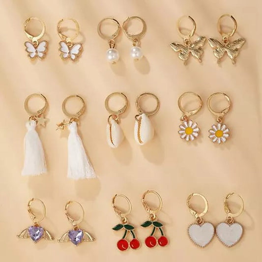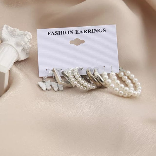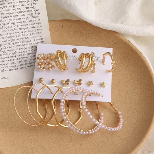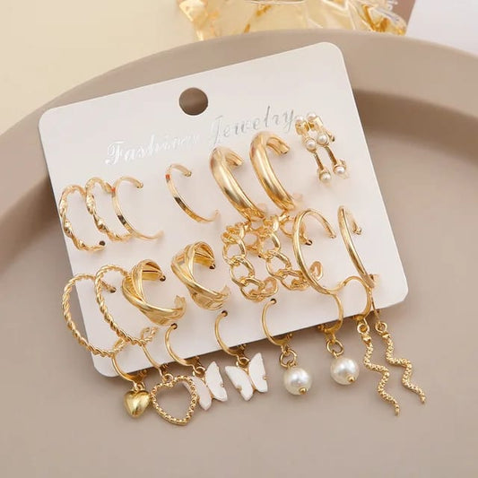 Yu Fashions Pearl Hoop Golden Stud Butterfly Star Korean Earrings Pair of 9