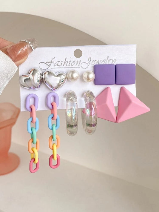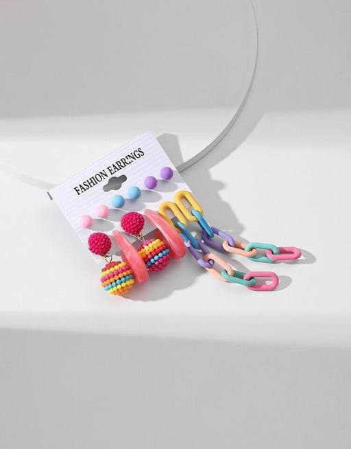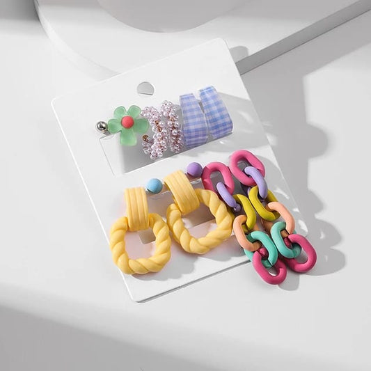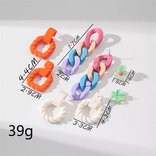 Yu Fashions Multicolor Cute Plastic Link Funky Korean Earrings Pair of 6