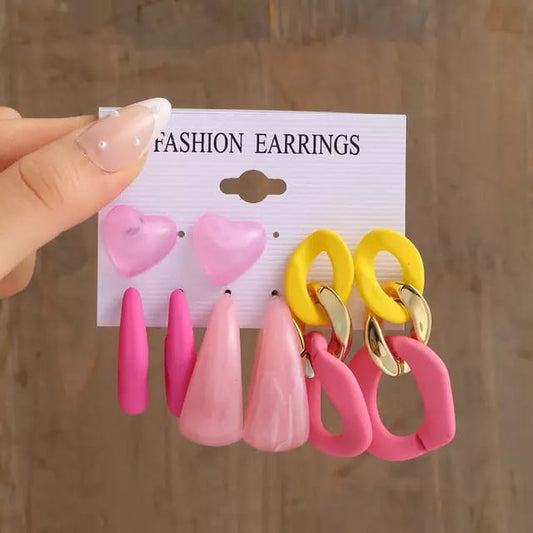 Yu Fashions Multicolor Plastic Cute Pink Korean Earrings Pair of 4