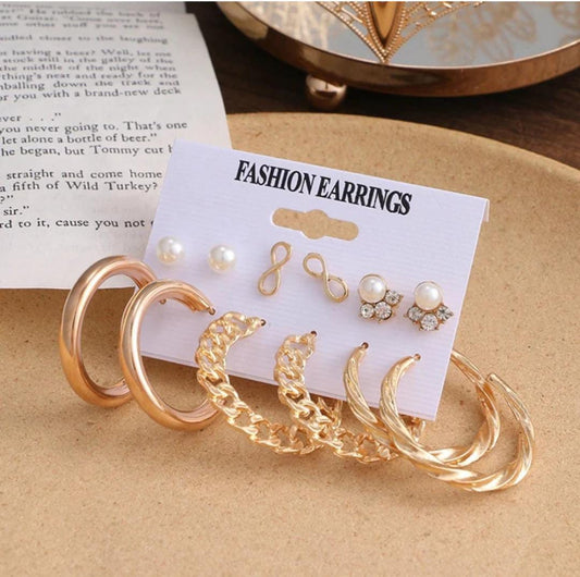 Yu Fashions Golden Link Hoop Korean Earrings Pair of 6