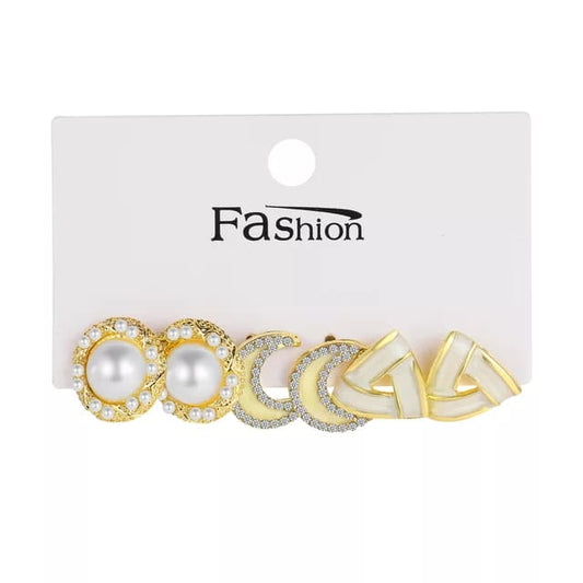 Yu Fashions Pearl Rhinstone High Fashion Korean Earrings Pair of 6