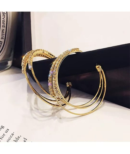 Yu Fashions High Fashions Crystal Rhinstone 3 Hoops Korean Earrings Pair