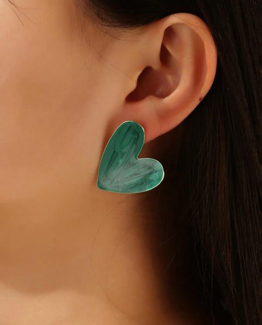 Yu Fashions Green Marble Printed Heart Shaped Korean Earrings pair