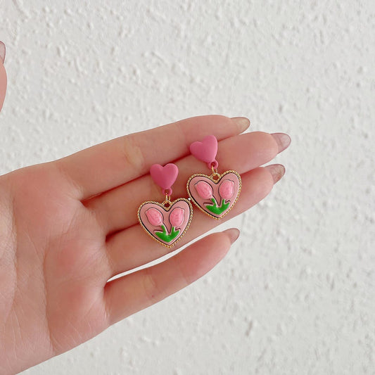 Yu Fashions Pearl Pink Flower Cute Korean Earrings Pair