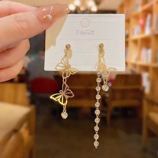 Yu Fashions Golden Crystal Unique Butterfly Different Korean Earrings pair