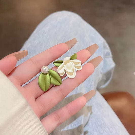 Yu Fashions Green & White Pearl Unique Cute Floral Korean Earrings Pair