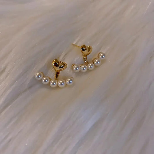 Yu Fashions Cute Dual Side Pearl Stud Korean Earrings Pair