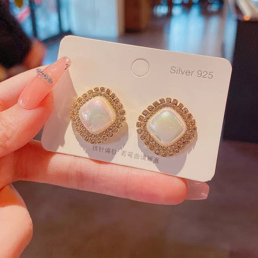 Yu Fashions High Fashion Square Shaped Rhinstone Pearl Korean Earrings Pair