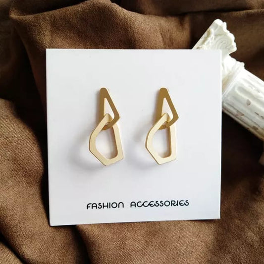 Yu Fashions Golden Twisted Geomtrical Dual Korean Earrings Pair