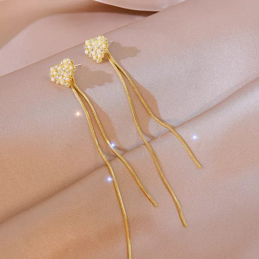 Yu Fashions Heart Shaped Rhinstone Tassel Korean Earrings Pair