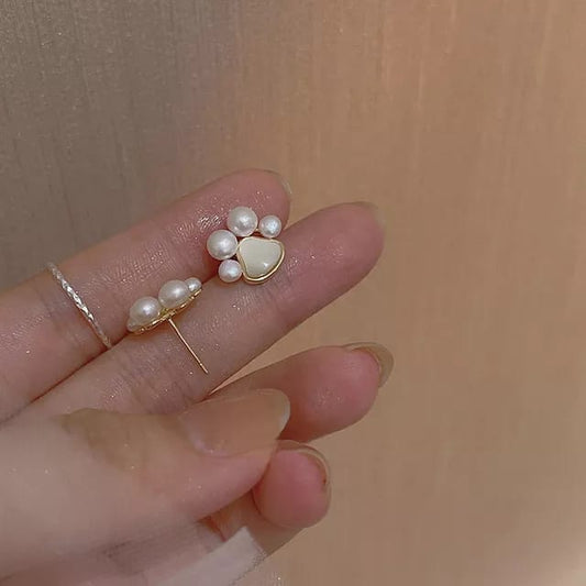 Yu Fashions Kitten Paw White Pearl Cute Korean Stud Earrings Pair