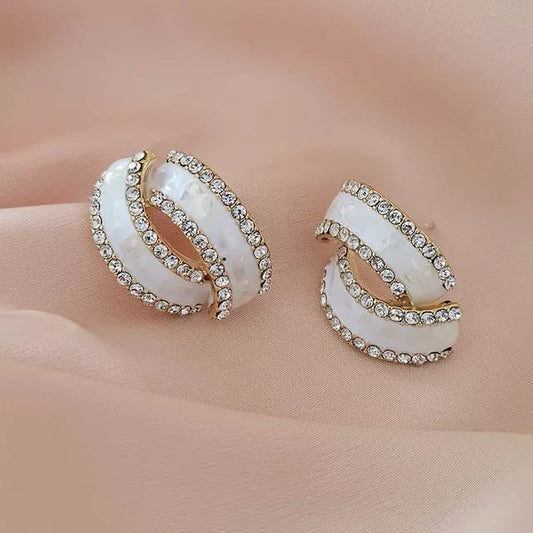 Yu Fashions Geometrical Shaped High Fashion Crystal Korean Earrings Pair
