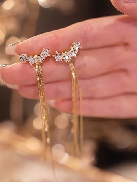 Yu Fashions Star Shaped Rhinstone Tassel korean Earrings Pair