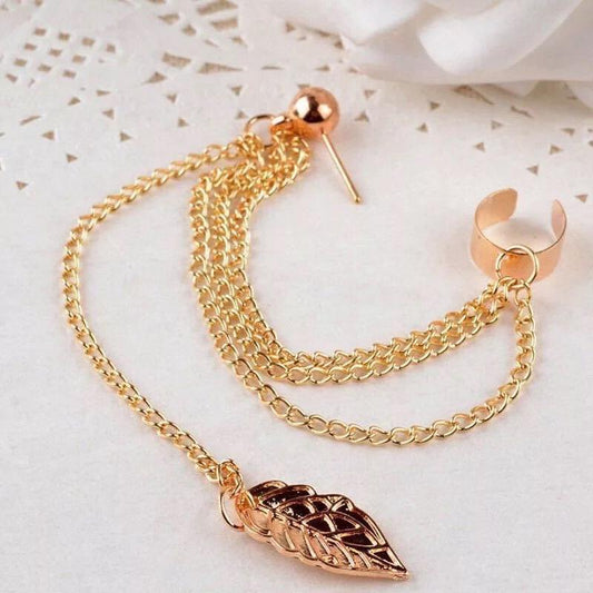 Yu Fashions Golden Tassel Chain Leaf Single Pc Earhook Crawler Korean Earring