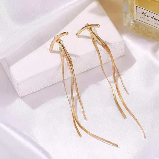 Yu Fashions Golden T Shaped Tassel Korean Earrings Pair