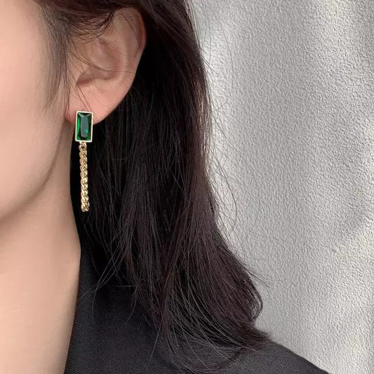 Yu Fashions Green Emerald Stone High Fashion Korean Earrings Pair