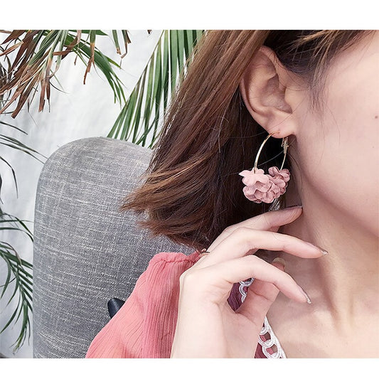 Yu Fashions Cute Flower Fabric Petals Hoop Korean Earrings Pair