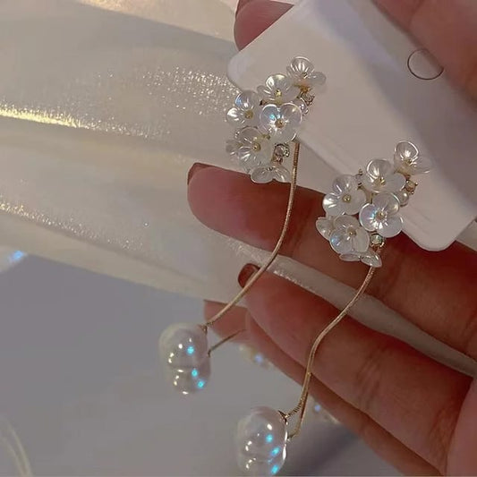 Yu Fashions Faux Pearl Flower Bunch Drop Pearl Golden Korean Earrings Pair