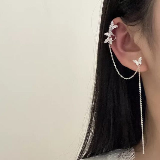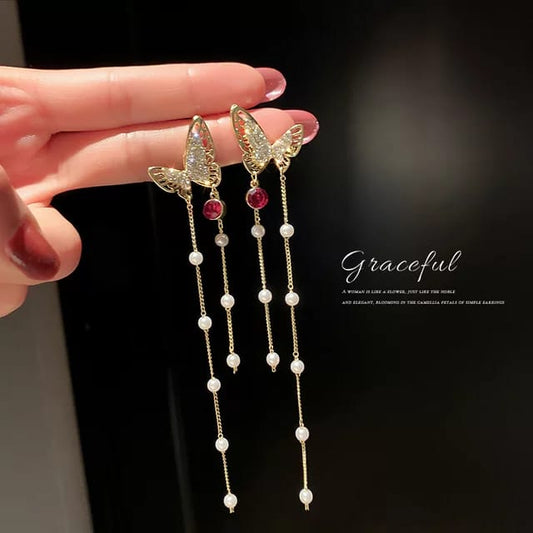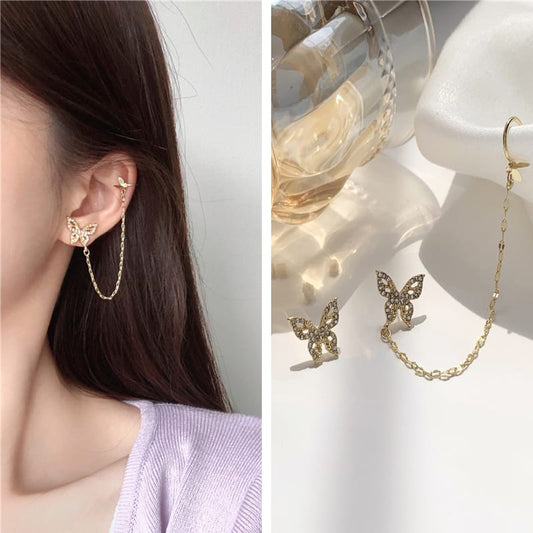Yu Fashions Rhinestone Cute Butterfly Chain Korean Earrings Pair