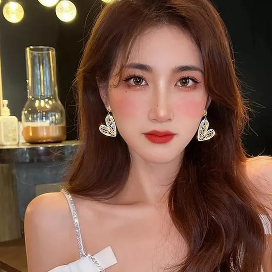 Yu Fashions rhinestone Crustal Heart Shaped Metal Korean Earrings Pair