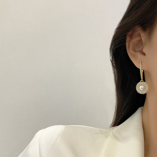 Yu Fashions Pearl Hoop Cute Drop Circle Korean Earrings Pair