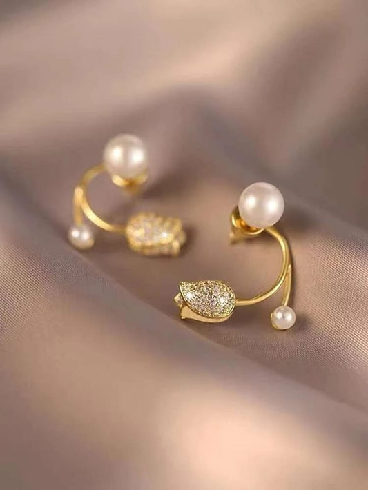 Yu Fashions Flower Pearl 2 way High Fashion Korean earrings Pair