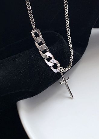 Yu Fashions Half Link Silver Cross Pendent Necklace Chain