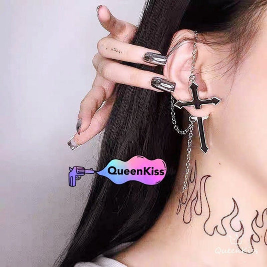 Yu Fashions Cross Rhinestone Punk Hip Hop Silver Chain Korean Earrings Pair