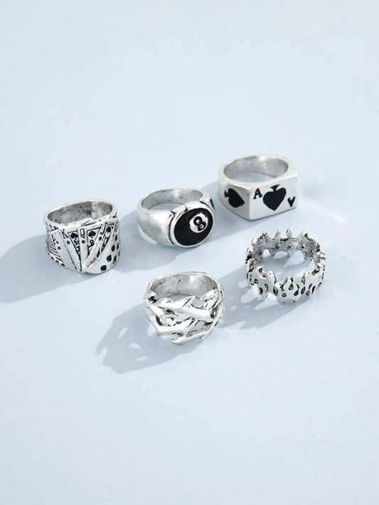 Yu Fashions silver Gothic 8 Number Playing Card Poker ring set