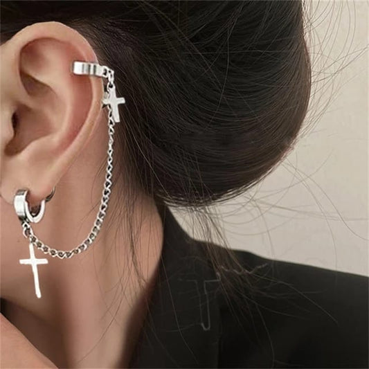 Yu Fashions Silver Metal Cross Single Pc Earhook Crawler Korean Earring