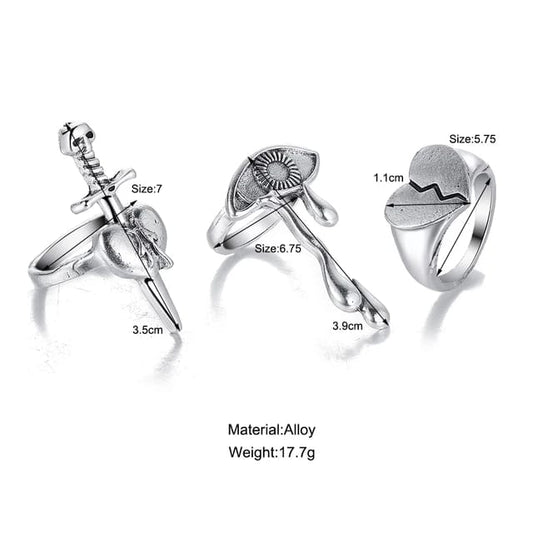 Yu Fashions Cry Eye sword Broken Heart Korean Ring Set of 3