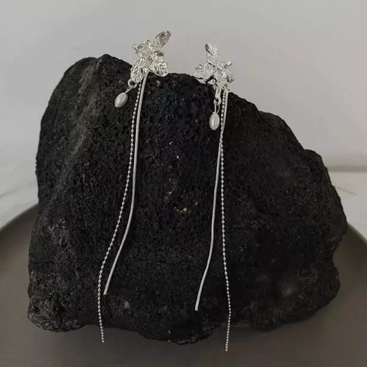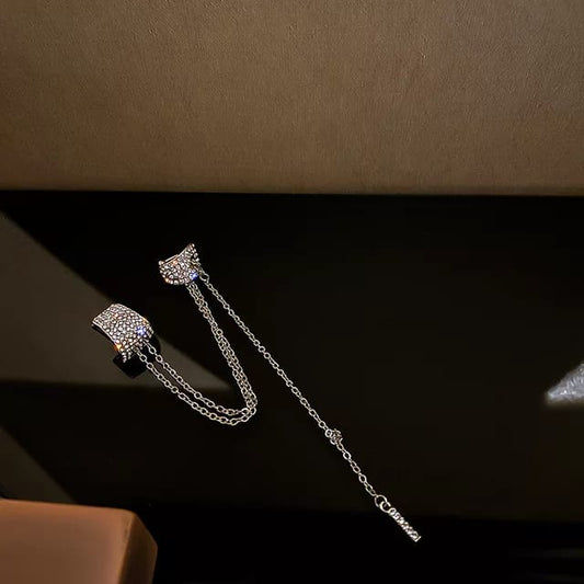 Yu Fashions 2 Hooks Silver Rhinestone Unique Single Pc Tassel Drop Chain Earhook Korean Earring