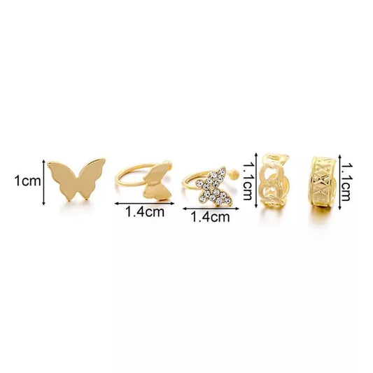 Yu Fashions Butterfly Rhinestone Link Cute Earcuff Set of 5
