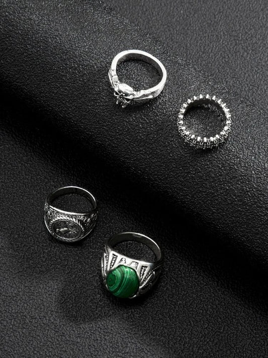 Yu Fashions Green Malachite Skull Ring Set of 4